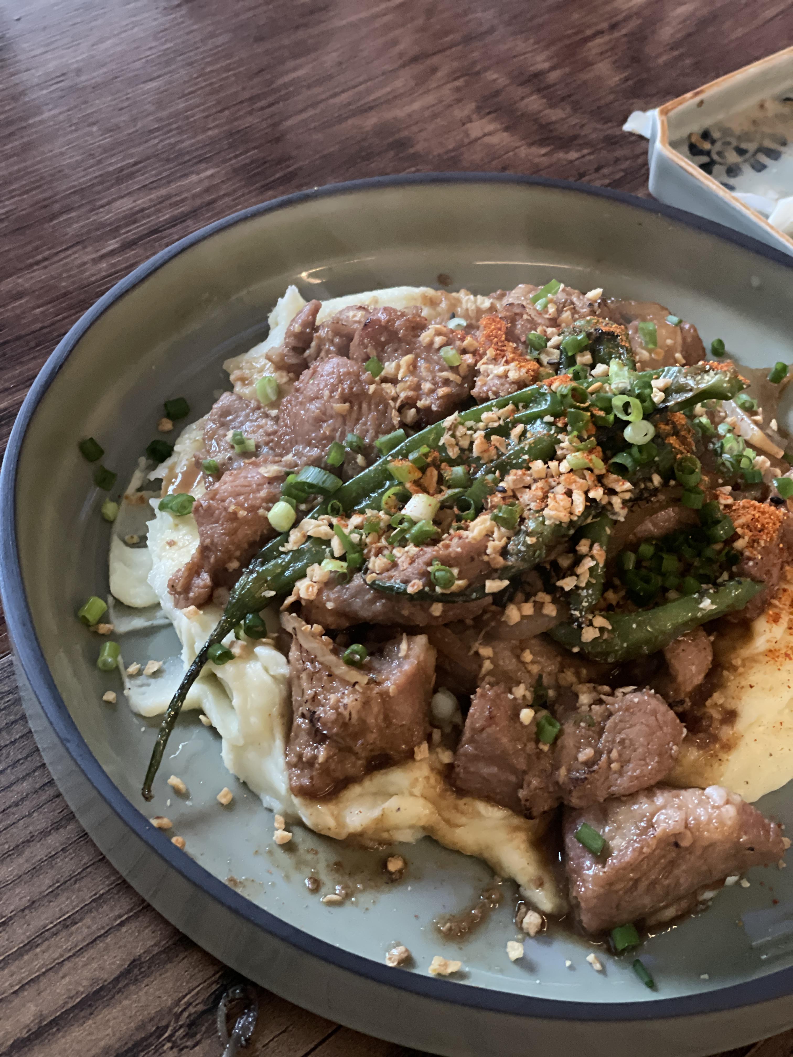 밑에 깔린 감자 샐러드와 된장 목살구이 조합이 너무 너무 맛있었다. 목살이 하나도 뻑뻑하지 않고 감자와 잘 부드럽게 섞이면서 엄청 맛있게 먹었던 메뉴.